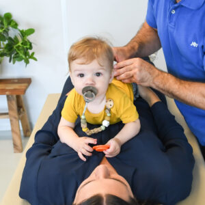 Baby’s die bij een Body Stress Release behandelaar komen, worden behandeld terwijl ze in contact zijn met één van de ouders. Hierbij ligt de ouder op zijn/haar rug op de behandelbank en zal het kindje op de buik van de ouder liggen. Soms kiest de practitioner ervoor de ouder te laten zitten met de baby op schoot. Zo creëren we een zo veilig mogelijk gevoel voor het kindje.