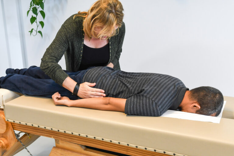 Bij het behandelen van bedplassen kijken we niet alleen naar het onderlichaam. Langs de gehele wervelkolom kan spanning zijn opgeslagen. Er is bij bedplassen vaak wel sprake van verhoogde spanning in de onderrug en het bekkengebied. Dat gebied kan heel gevoelig zijn. Het heiligbeen, het kleine staartbeentje en de schaambeentjes met de aangehechte spieren kunnen veel spanning vasthouden. Deze gebieden worden uitvoerig getest en met milde, precieze impulsen gestimuleerd om de spanning los te laten.